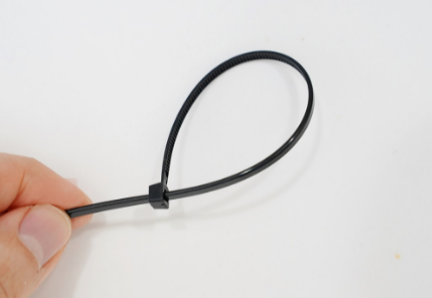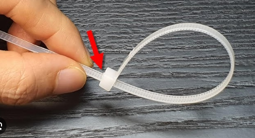 케이블 타이의 홈 찾기: 케이블 타이를 자세히 살펴보면 한쪽 끝에 홈이 파여 있는 것을 확인할 수 있습니다.